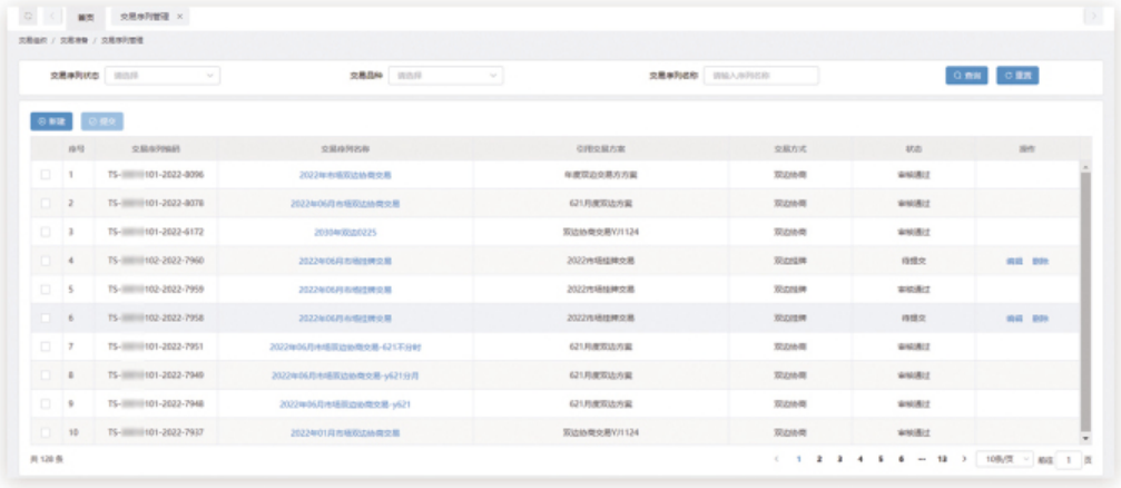 對交易序列的維護,通過選擇交易方案,按需選擇交易需求,從準(zhǔn)入、申報、出清等方面對交易進行準(zhǔn)備,同時生成交易序列。
