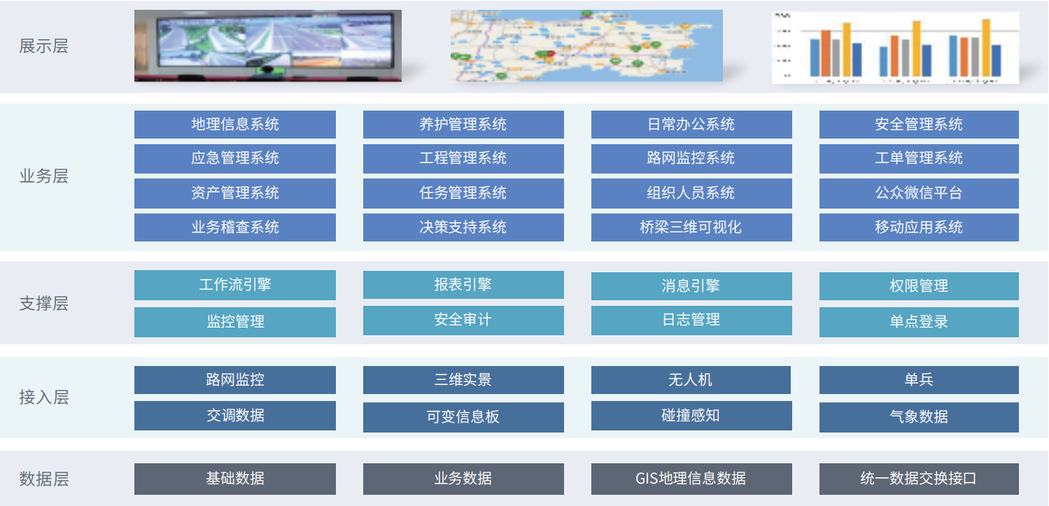 智慧安全公路管理服務(wù)系統(tǒng)以“統(tǒng)一組織、統(tǒng)一設(shè)計、跨部門協(xié)同”為指導(dǎo)思想,以路政管理、養(yǎng)護(hù)管理、應(yīng)急指揮管理、費用征收和統(tǒng)一的行業(yè)標(biāo)準(zhǔn)規(guī)范體系為基礎(chǔ),集成相關(guān)應(yīng)用工具和軟硬件系統(tǒng),讓管理更加準(zhǔn)確、高效、規(guī)范、可控,實現(xiàn)人、財、物一體化精確管理。